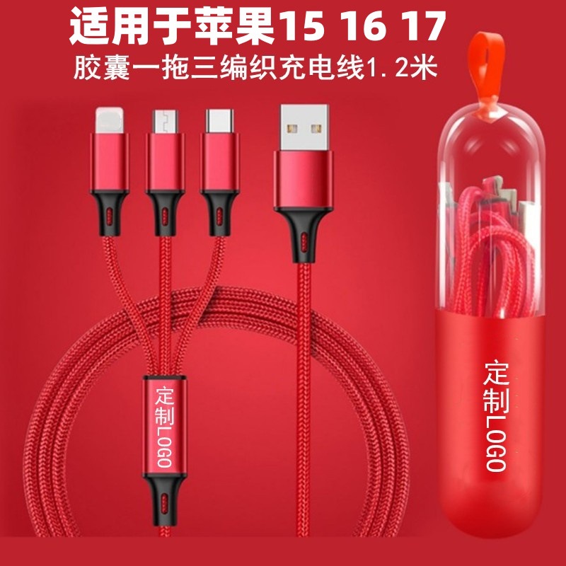 Kabel data ponsel satu to tiga anyam isi daya cepat, hadiah grosir kabel pengisian daya kapsul tipe-c untuk Apple Android