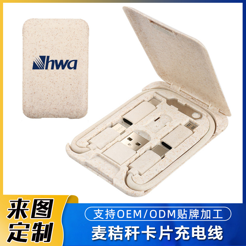 Kabel pengisi daya ponsel kartu bisnis tiga dalam satu dapat diatur sedotan gandum kabel data multifungsi pembuatan hadiah