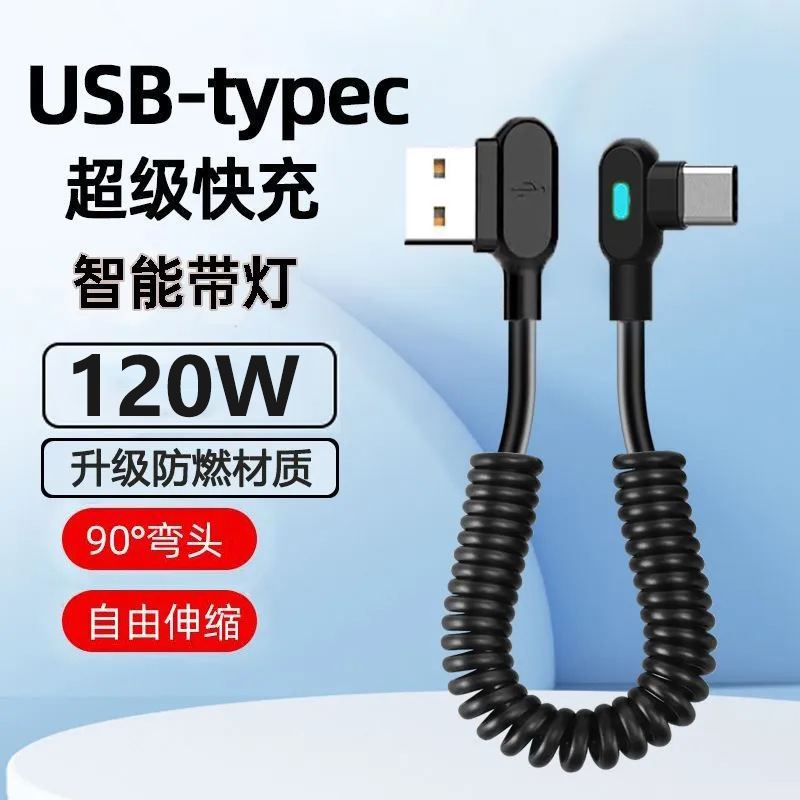 Kabel data tipe-c, tpyec pengisian super cepat siku 6a kabel pengisian daya 66W layar proyeksi mobil teleskopik pegas ponsel