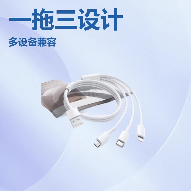 6A 3-in-1 kabel pengisian daya super cepat 1-trailer 3 kabel data untuk transmisi data ponsel Android type-c Apple