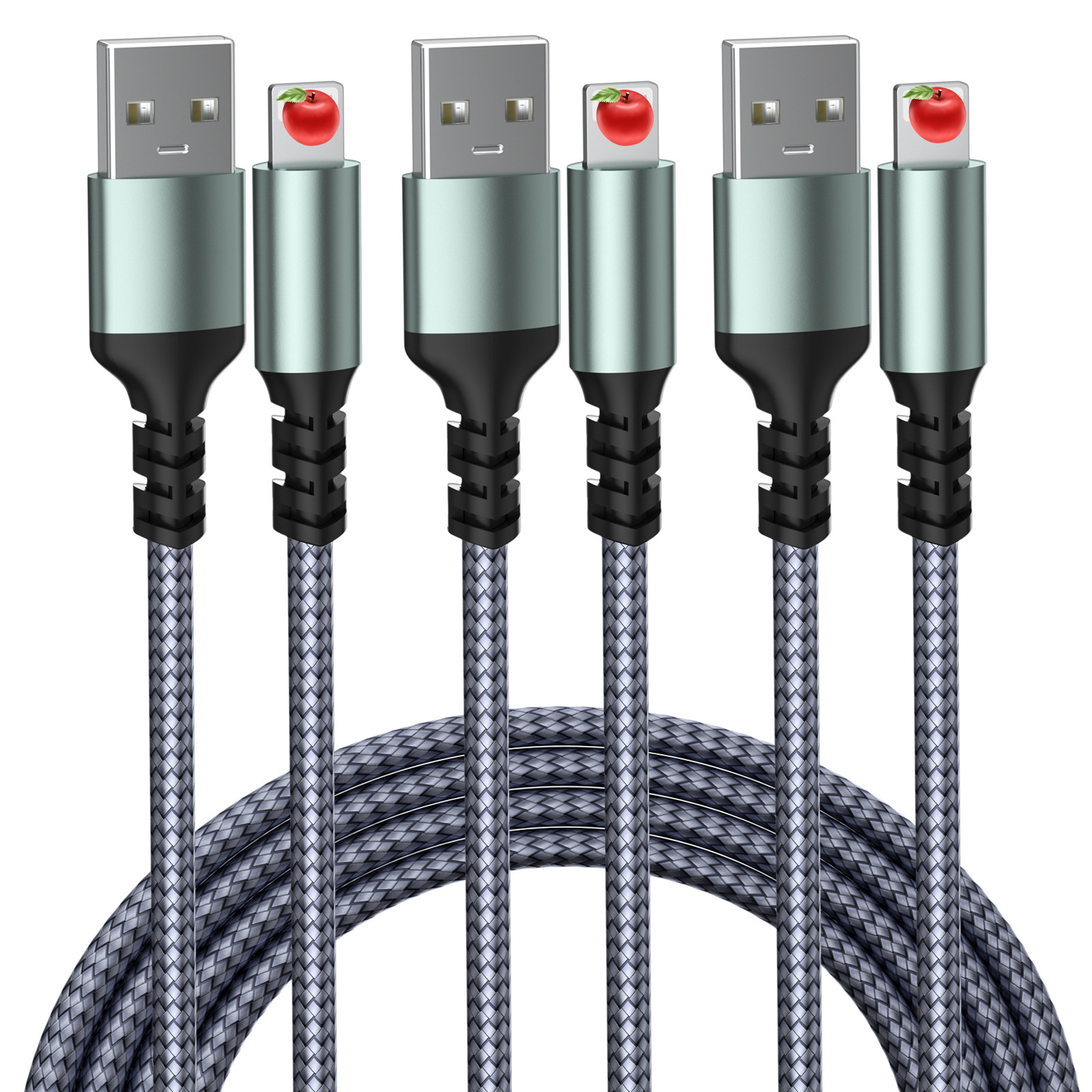 Kabel Data Ponsel Apple yang Cocok Dikepang Kabel Pengisian Ganda Tipe-C Kabel Pengisian Cepat Supermarket Set Grosir
