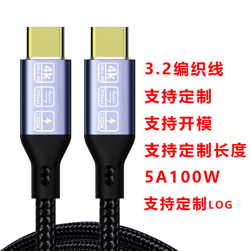 Pabrik grosir kabel data fungsi penuh USB3.2 kabel data tipe C berkepala ganda pd100W kabel pengisian daya Cepat c-to-c