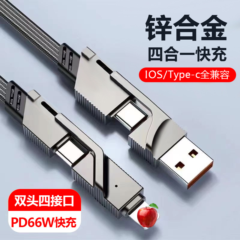 Kabel pengisi daya PD berlian hitam zinc alloy, 100W pengisian daya super cepat, kabel data Empat dalam satu tarik dua kilat
