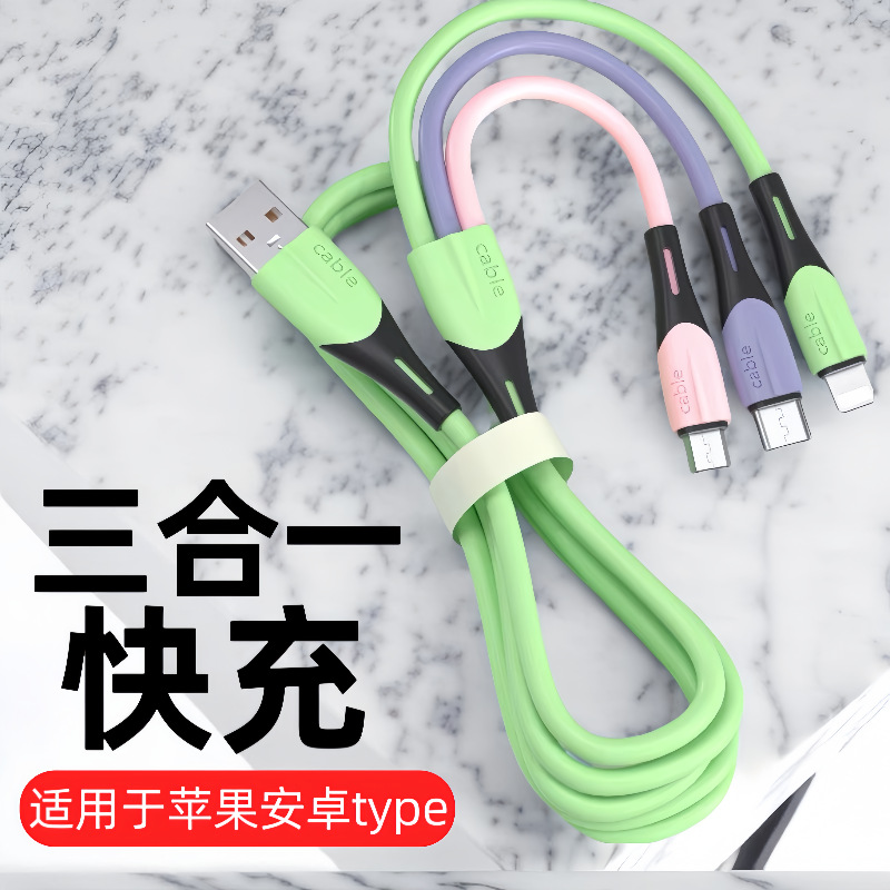 Penjualan langsung pabrik diperpanjang 3 m tiga dalam satu kabel data satu tarik tiga silikon cair untuk Android typec Apple 8