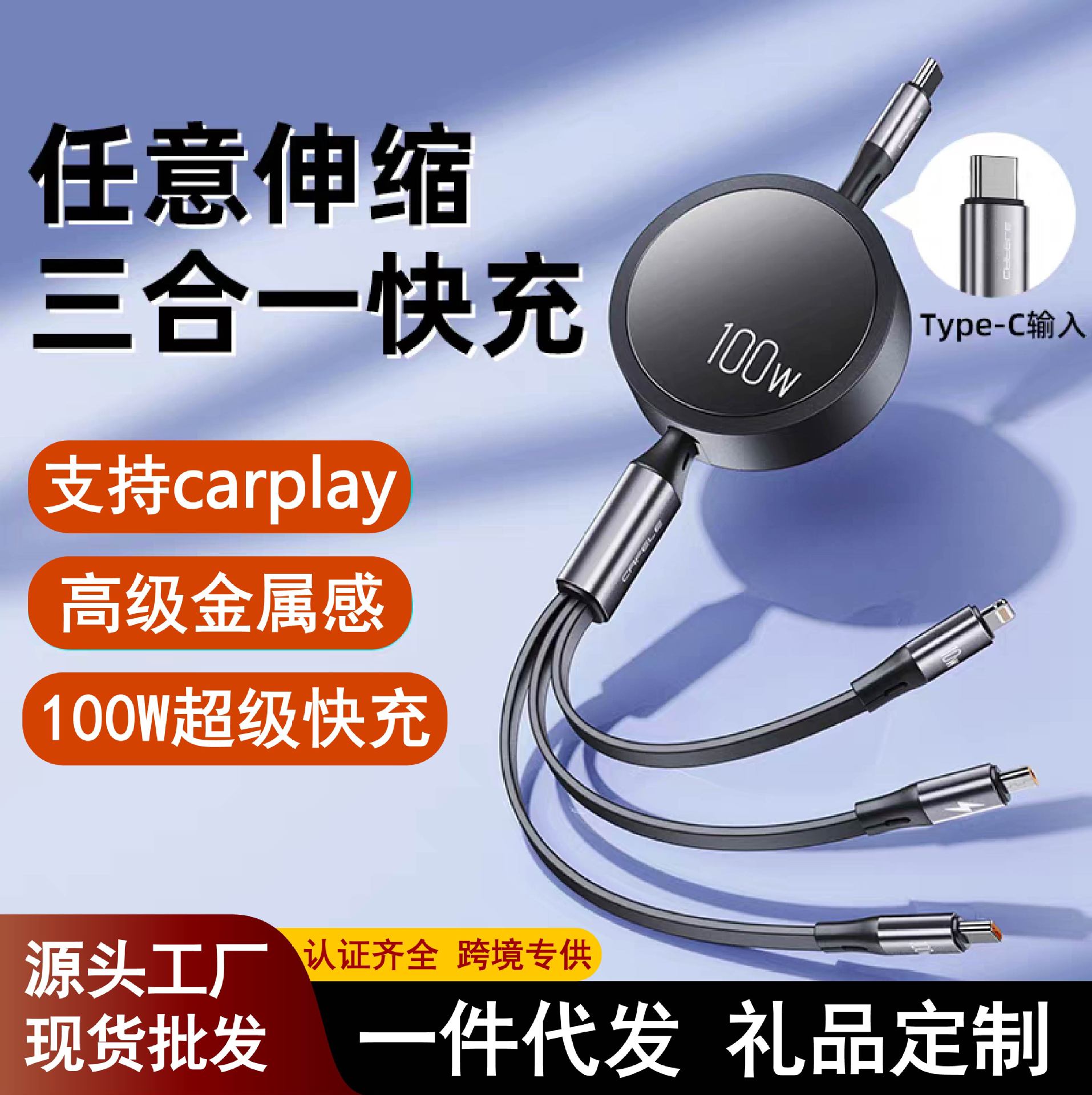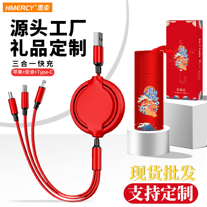 Kabel data teleskopik satu ke tiga, kabel data Android TYPEC tiga dalam satu kabel pengisian daya ponsel hadiah iklan LOGO