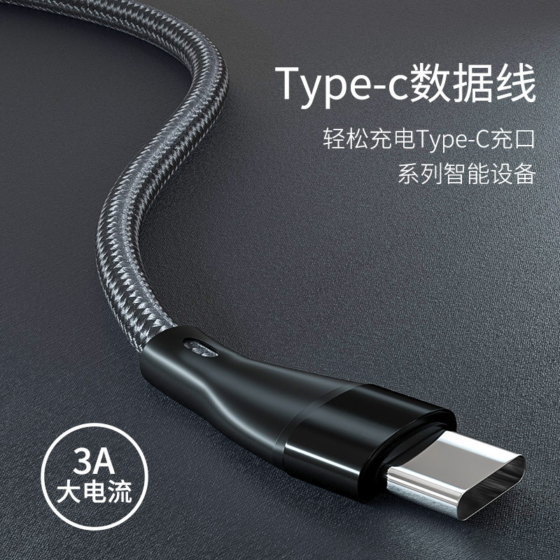 Kabel data 3A kepang QC3.0 kabel pengisian daya cocok untuk TYPE-C Apple Huawei Android kabel data pengisian cepat
