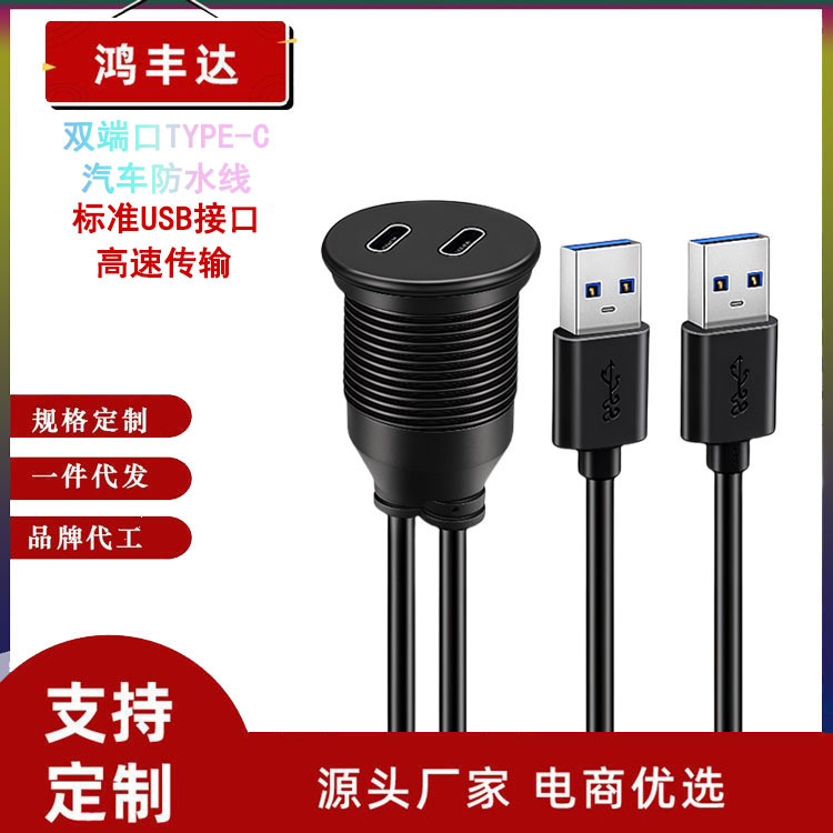 Kabel data ekstensi panel modifikasi kabel tahan air USB A male Port Wanita typeC Dual USB3.0