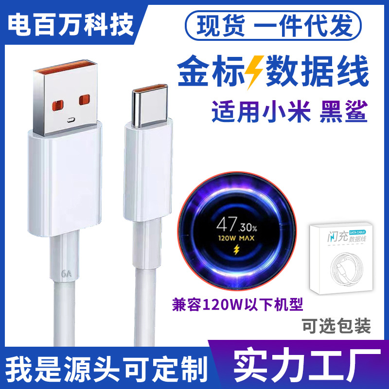 Cocok untuk kabel data Xiaomi 120W, pengisian cepat Redmi 67W standar emas MAX sepenuhnya kompatibel dengan pengisian cepat 90W kabel pengisian TypeC.