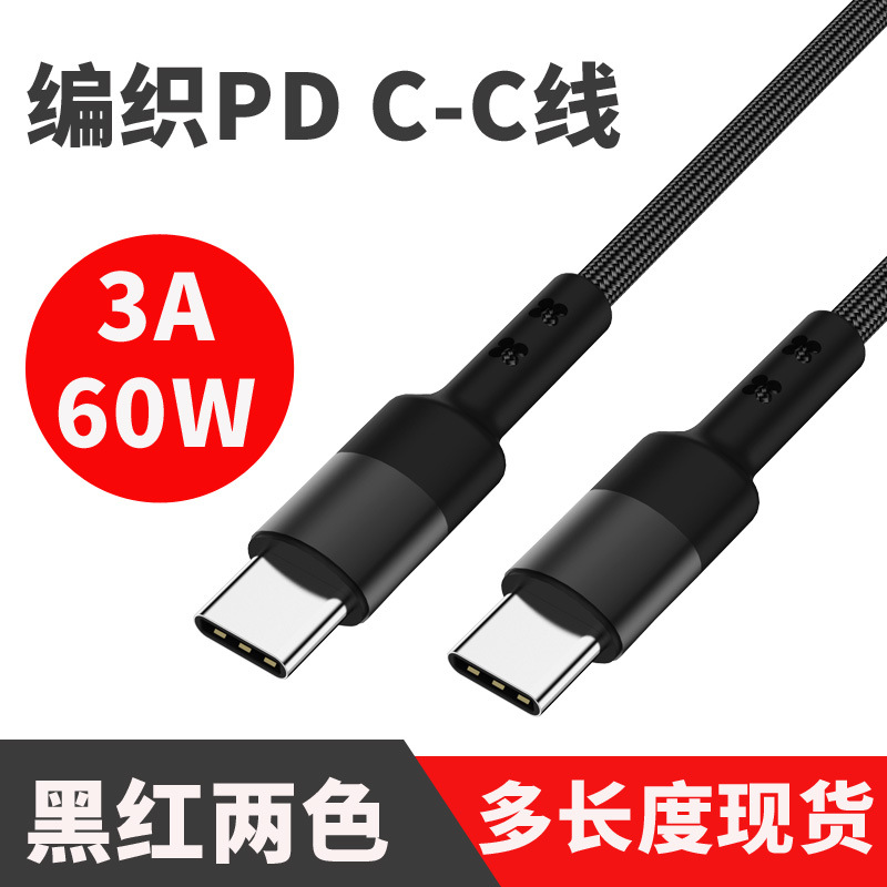 Kabel data PD kepang 3A baru, kabel tipe-c ke tipe-c hingga pengisian cepat, kabel pengisian daya berkepala ganda untuk pria