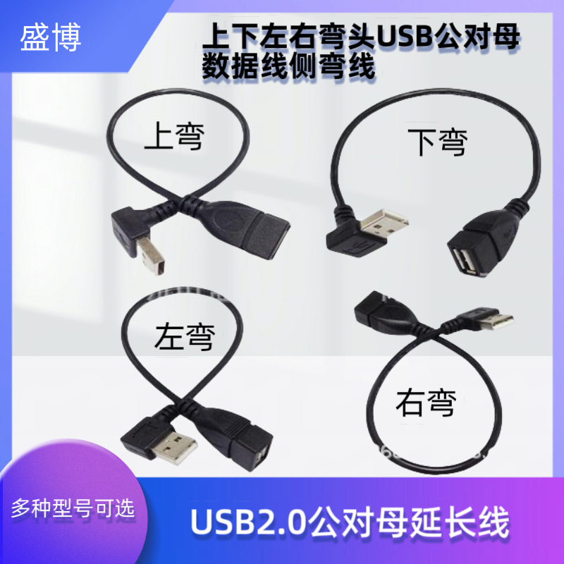 Kabel ekstensi USB2.0 AM head up, bawah, kanan dan kiri, kabel data male-to-female USB