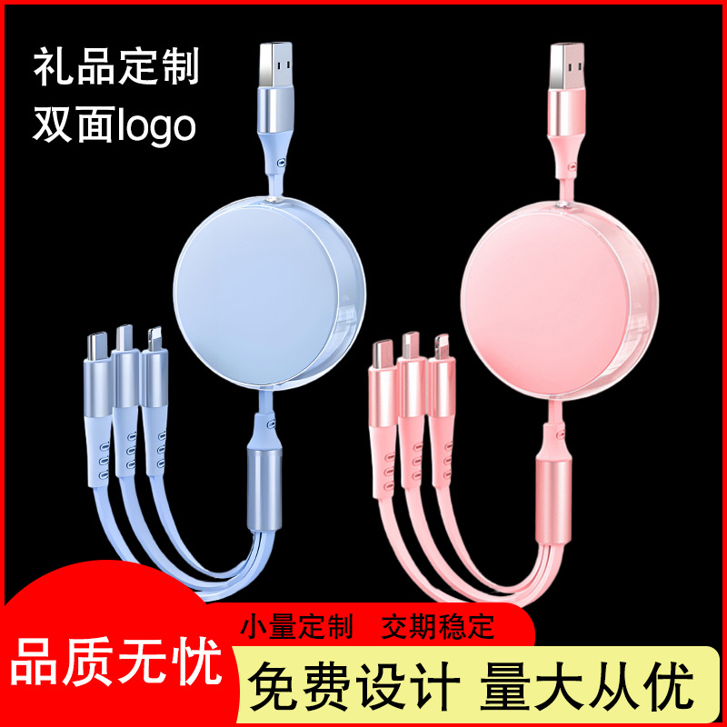 Hadiah pameran kabel data dapat ditarik satu ke tiga logo kotak Mobil Portabel tiga dalam satu kabel pengisian daya tersedia