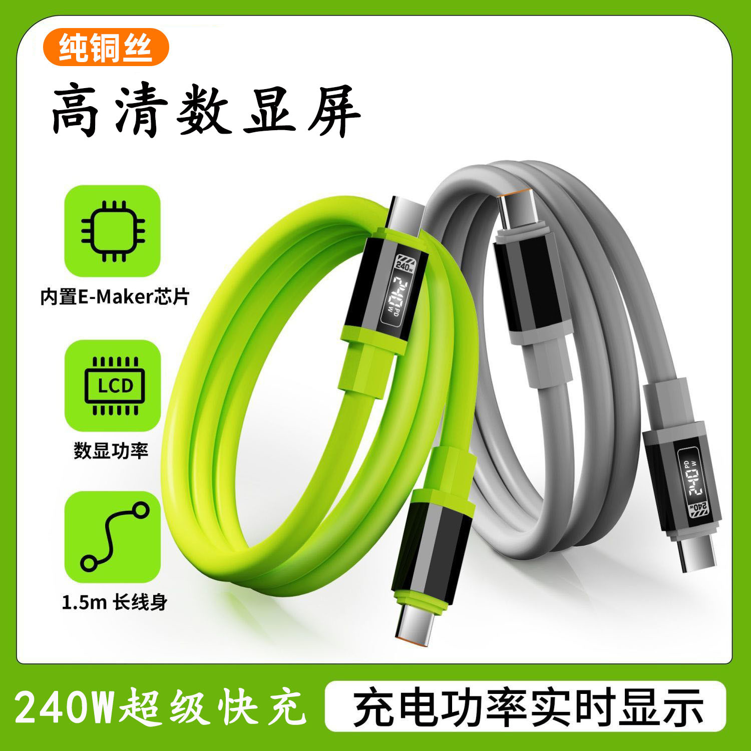 PD240 W Kabel Data Pengisian Cepat Untuk TYPE-C Apple 15/16 HD Smart LED Kabel Pengisian Digital Silikon