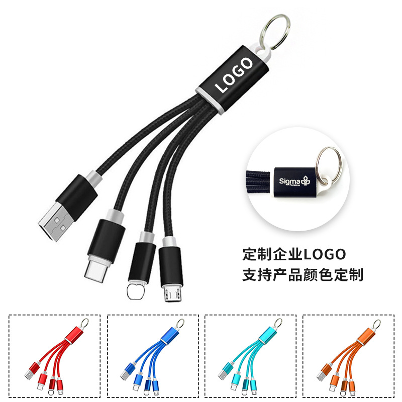 Kabel pengisian daya tiga dalam satu logo gantungan kunci kabel Hadiah anyaman nilon multifungsi gantungan kunci satu hingga tiga kabel data