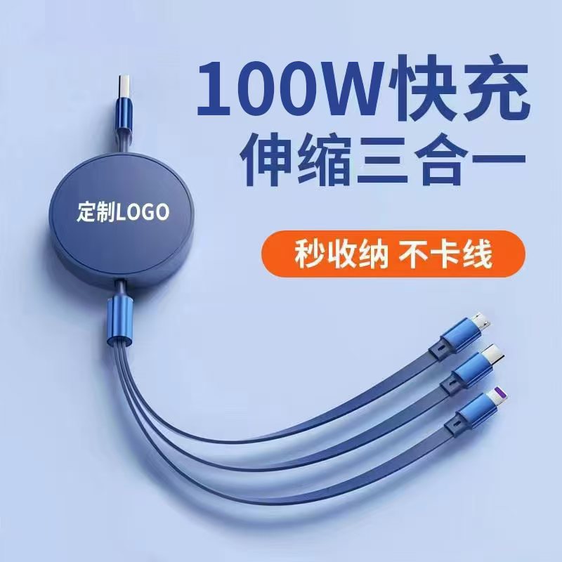 Kabel pengisian daya data yang dapat ditarik satu-ke-tiga dengan pengisian daya super cepat 100W. Cocok untuk e-commerce hadiah mewah, dapat mengisi daya Apple 16.