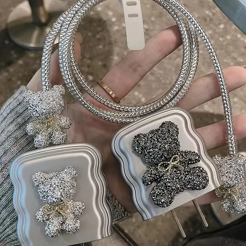 iPhone充电器保护套适用苹果数据线20W快充 防折断可爱黑白钻小熊
