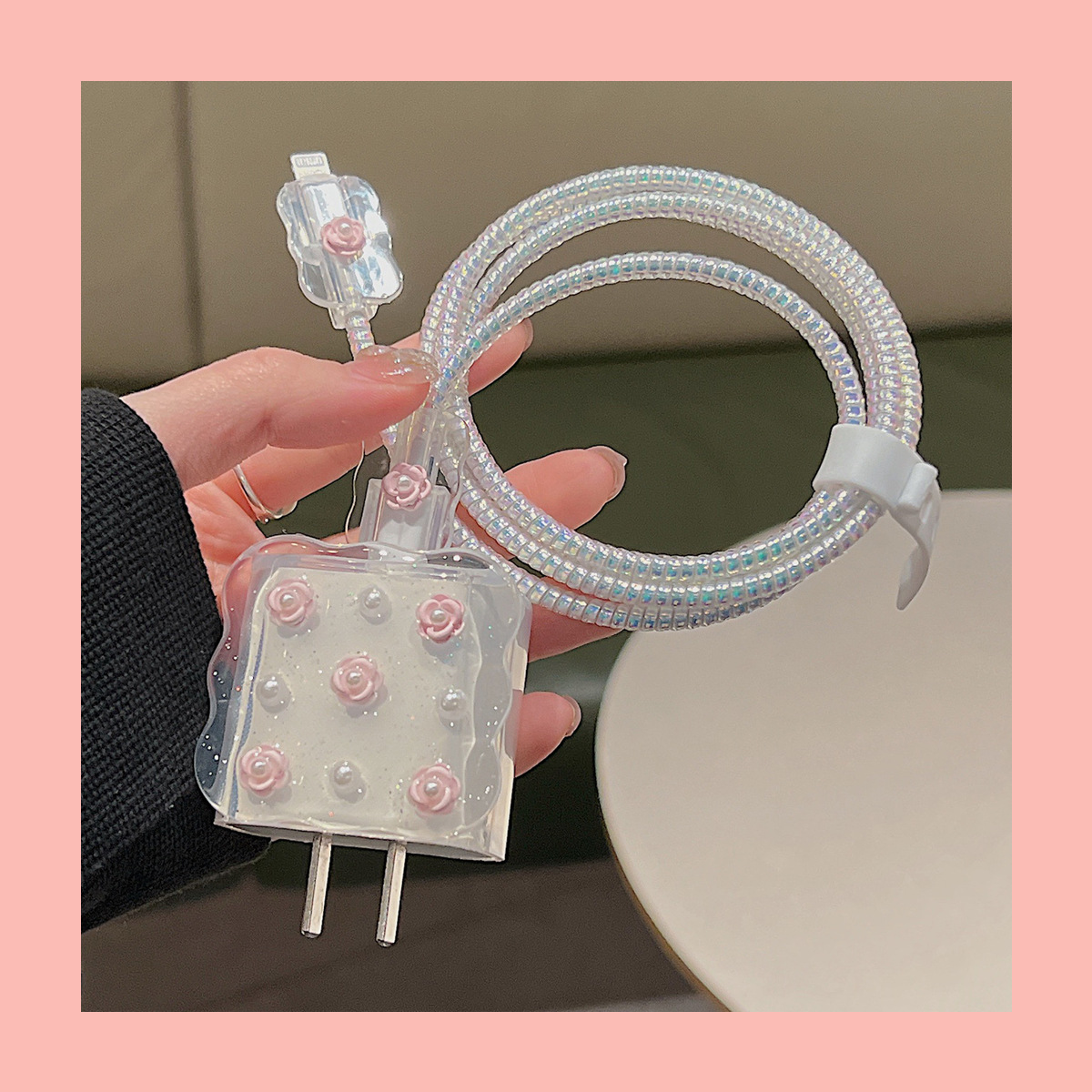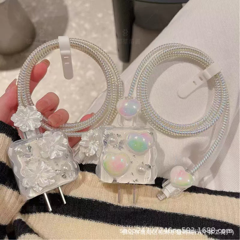 ins白花苹果14promax快充头15数据线保护套iPhone13充电器壳