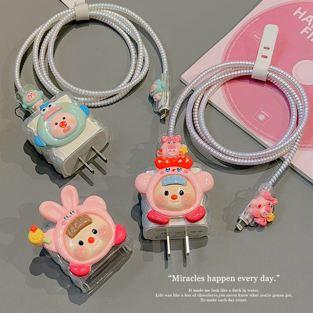 Penutup pelindung pengisi daya apple 15pro jelek Lucu cocok untuk kabel data iPhone14 antirusak 13 cangkang pengisi daya Cepat 20W
