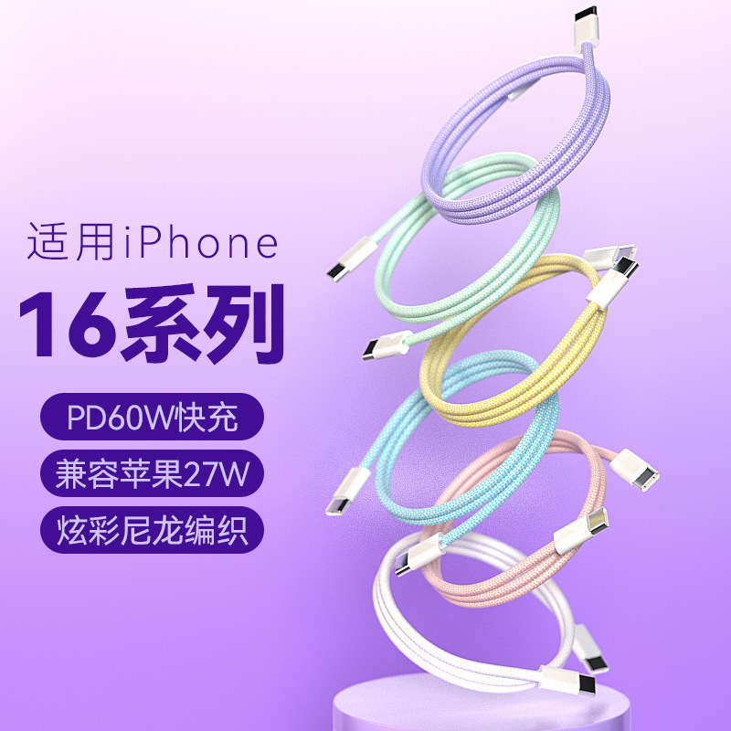 Kabel pengisian daya typec ganda untuk kabel pengisian cepat Apple 16 warna untuk menenun kabel data pengisian cepat Apple 15