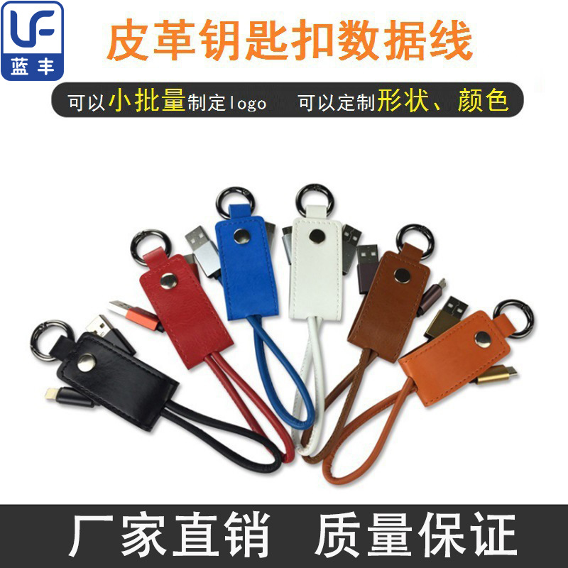 Hadiah rantai kunci kabel data PU cocok untuk Apple Android pengisian daya Cepat kabel data gesper kulit kunci tiga dalam satu