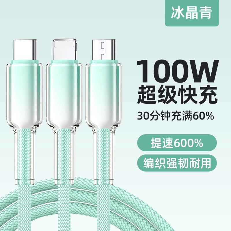 Satu Seret Tiga Kabel Data Pengisian Cepat Untuk Apple Huawei Typeec Android Kabel Pengisi Listrik 3-in-1 Kristal Es