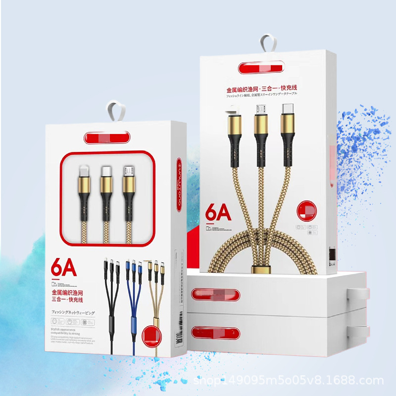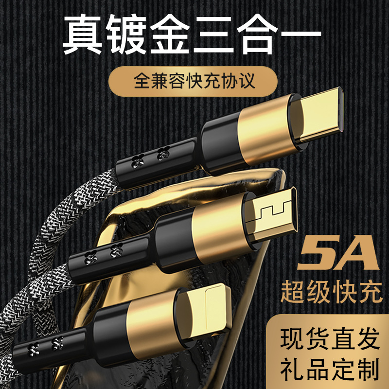 Kabel data berlapis emas, satu ke tiga kabel data untuk Huawei 5A pengisian daya super cepat tipe-c kabel pengisian daya Apple 14