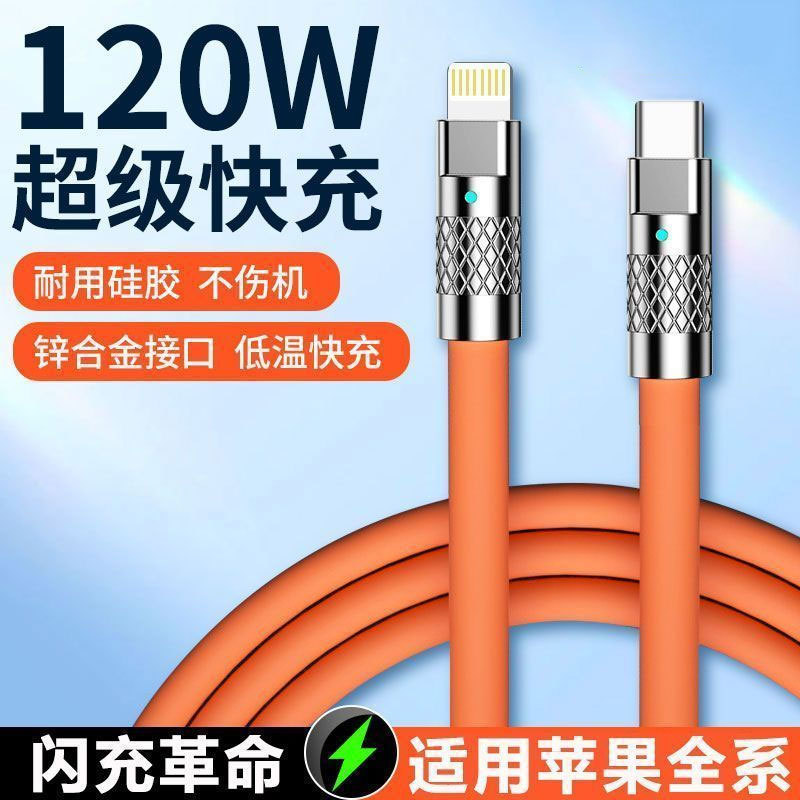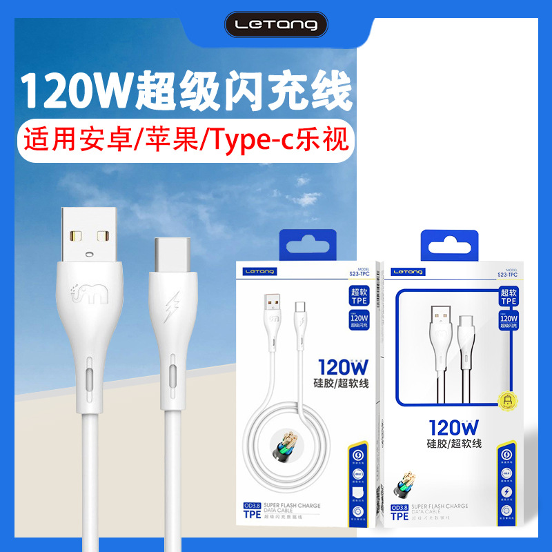 Kabel pengisi daya cepat, 120W garis pengisian daya Super kilat musik gula TPE satu kompatibel daya tinggi USB tebal