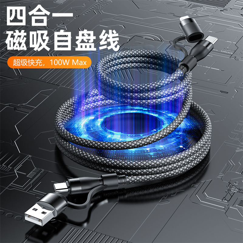 Kabel Pengisian 100W Penyimpanan Magnetik Kabel Data Typec Ganda Charge Super Cepat untuk Apple 15 Huawei