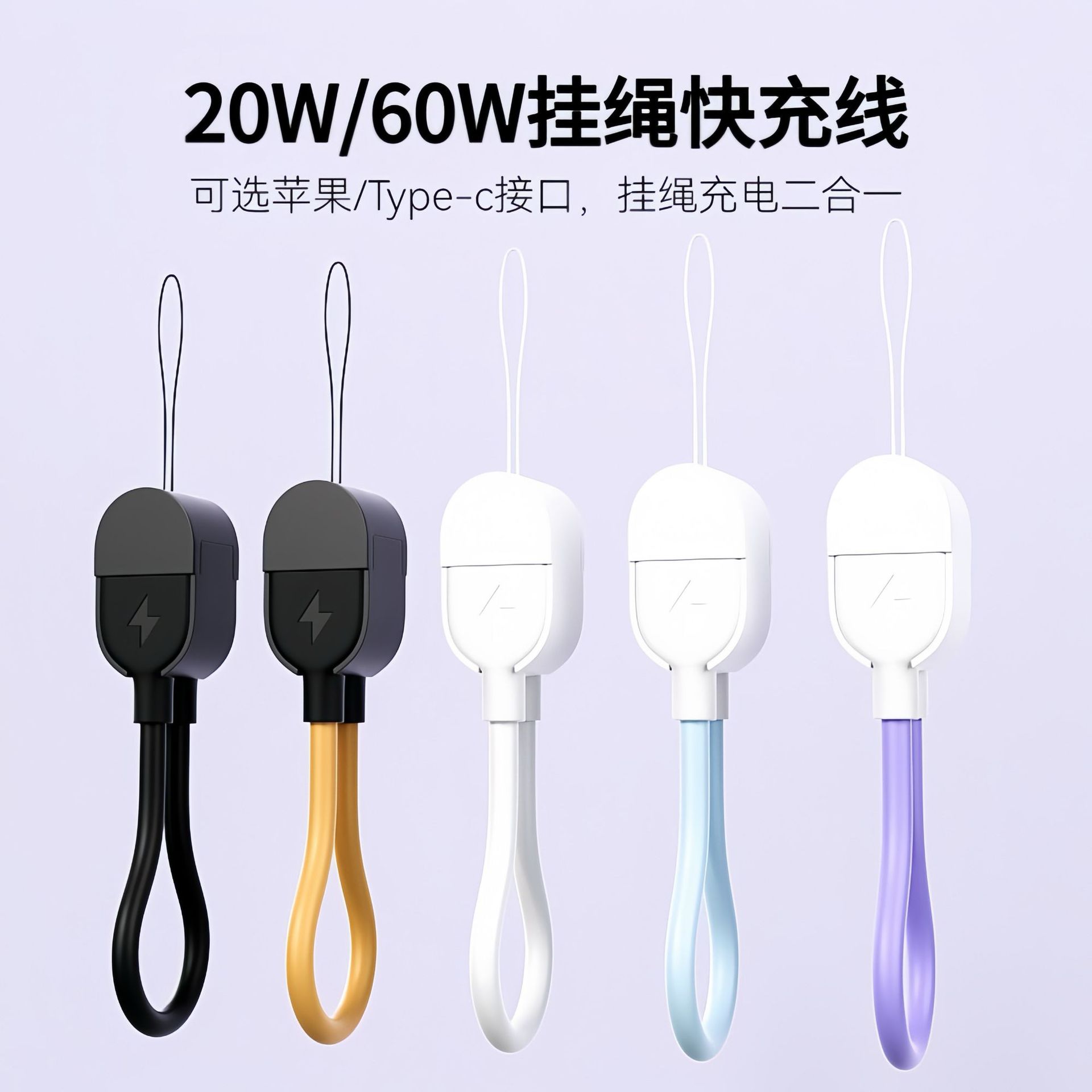 Gantungan kunci laris empat dalam satu pd pengisian daya Cepat portabel cocok untuk TYPE-C60W hadiah kabel data Apple 27W