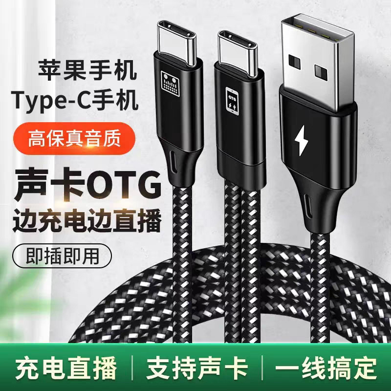 Kabel adaptor siaran langsung kartu suara otg dua-dalam-satu untuk Apple Android ke kabel pengisian daya sinkron ponsel typec