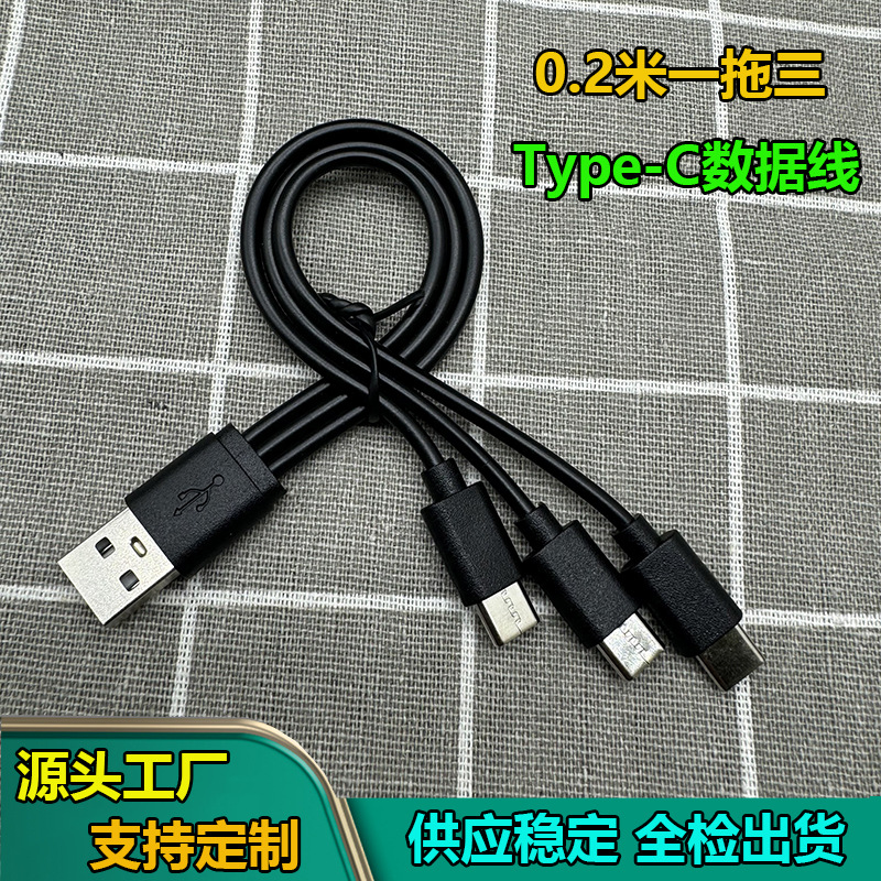 Ramah Lingkungan Kualitas Tinggi USB Satu Tiga Kabel Isi Ulang Tipe-C 0.2 Meter Satu Trailer Tiga Typec Kabel Data Pengisian Daya 1A