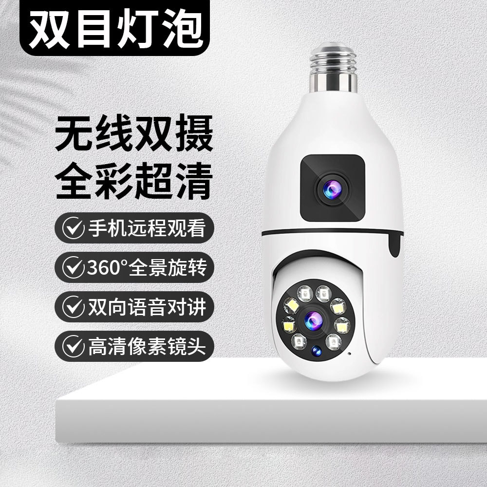 跨境热卖双目灯泡高清摄像头 智能无线WIFI360度全彩夜视安防监控