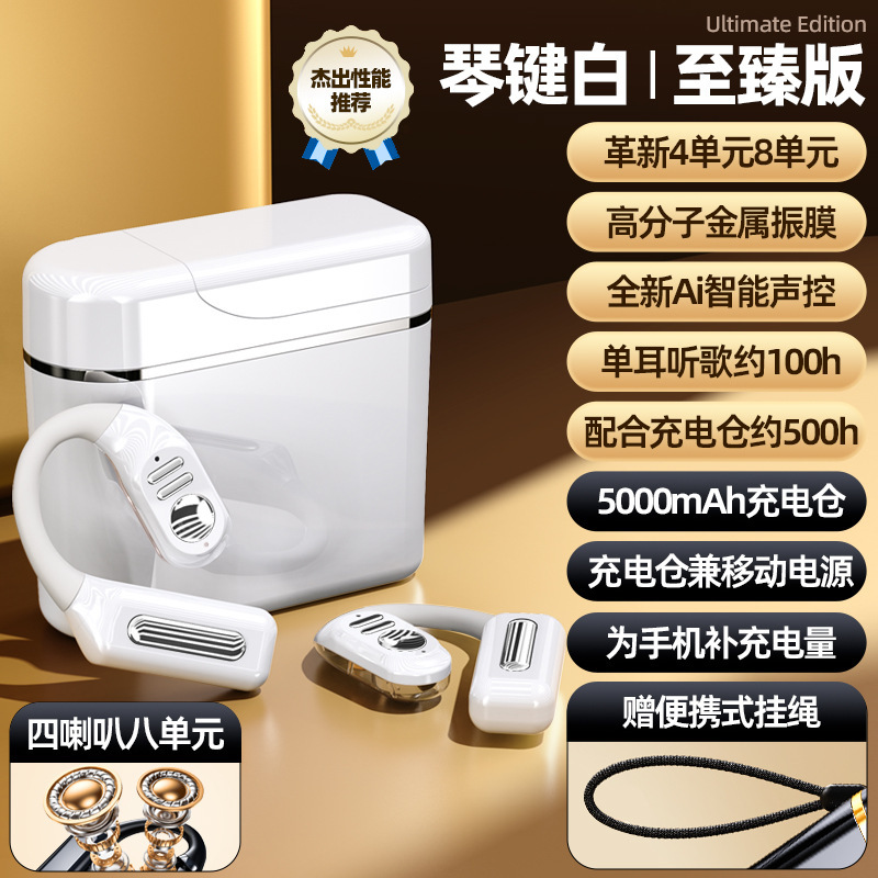 Headphone Bluetooth non-in-ear dengan daya tahan baterai lama, volume tinggi, model pengait telinga, desain terbuka untuk pengiriman dan navigasi, model baru 2024.