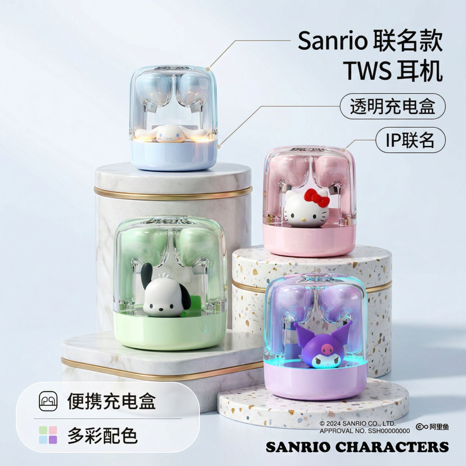 Sanrio Baru Headphone Bluetooth Nirkabel Kartun Culomi Headphone Transparan Pesta Pelajar Bernilai Tinggi Hadiah Barang Tersedia