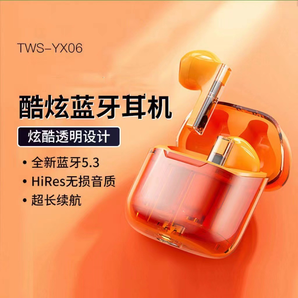 Grosir Cross-border headset Bluetooth game transparan YX06 panggilan HD daya tahan lama headset TWS nirkabel Huaqiang North