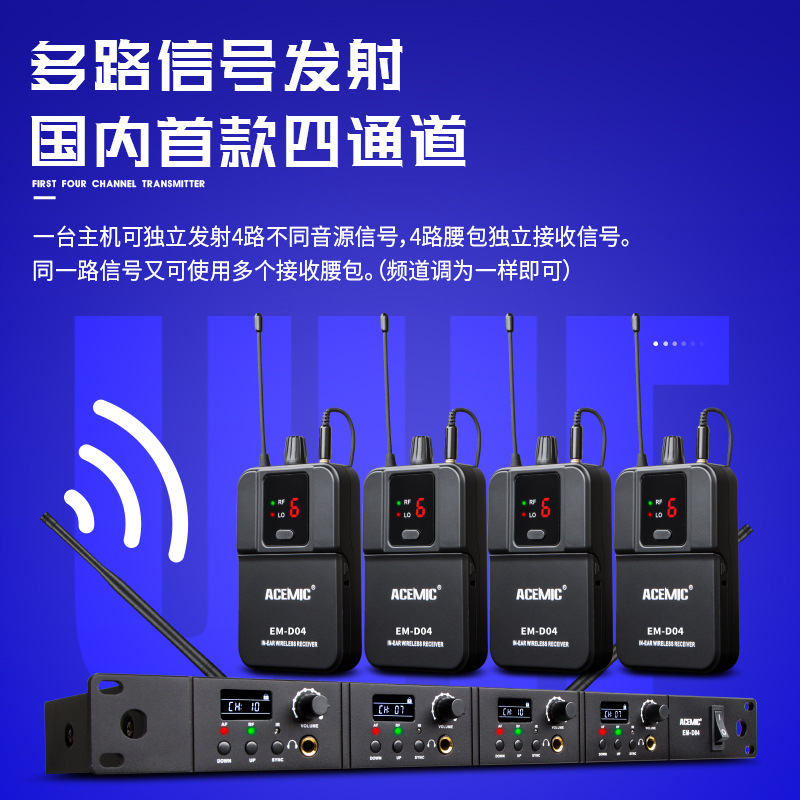Earphone 4 in-ear panggung profesional Sistem pemantauan kembali telinga nirkabel