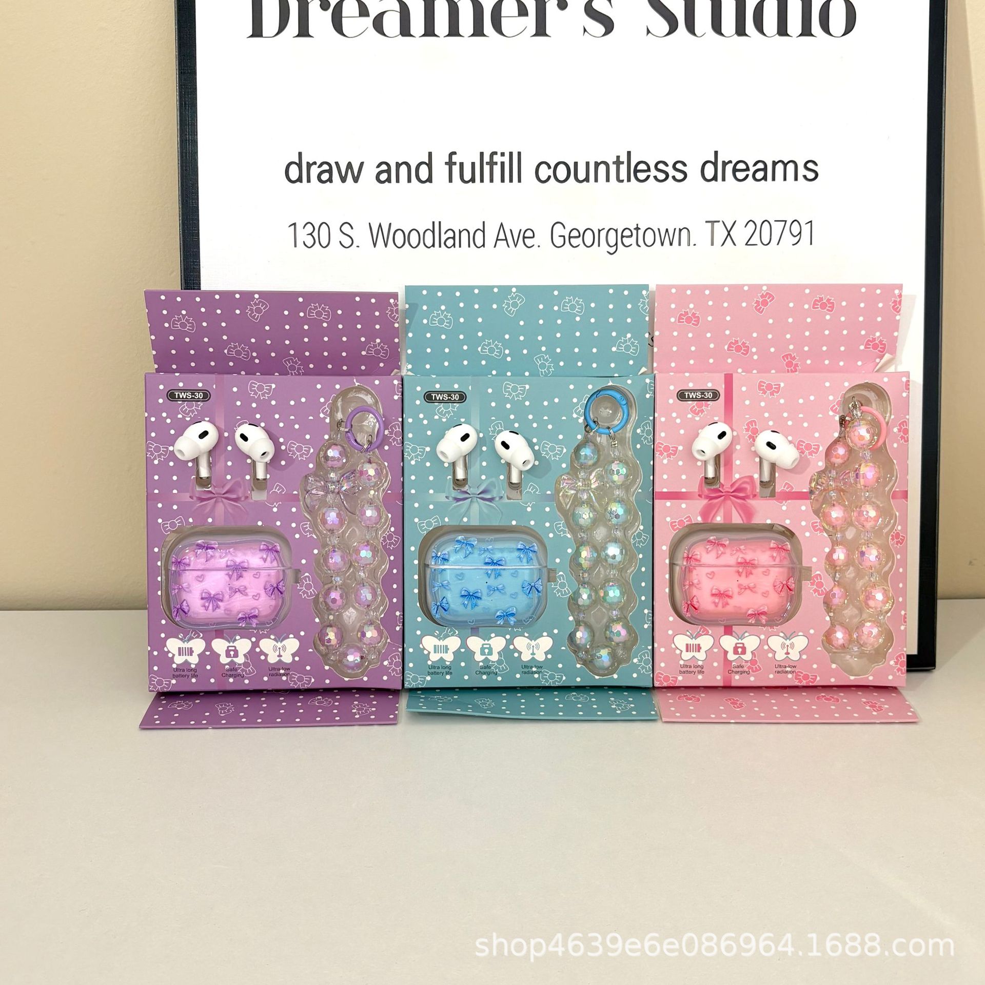 Sarung Pelindung Earphone Bluetooth Nirkabel Apple Airpodspro Earphone 34 Cocok untuk Kartun Ungu Generasi 12