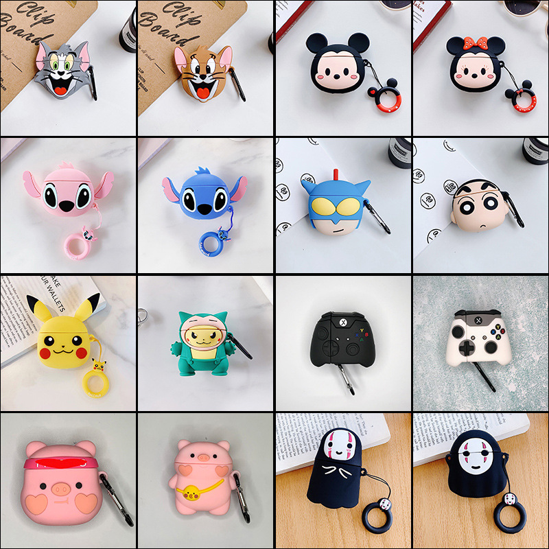 Casing earphone nirkabel airpods pro, wadah pelindung kartun Apple Bluetooth generasi 1/2 lucu berlaku