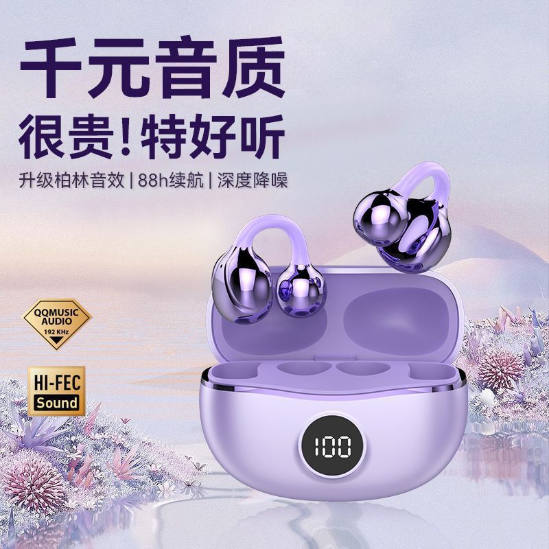 Headphone Bluetooth konduksi tulang nirkabel baru 2025, bukan in-ear, daya tahan baterai lama, cocok untuk olahraga dan lari, nyaman dipakai untuk jangka waktu lama tanpa rasa sakit.