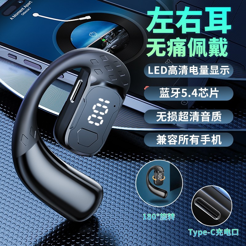 Headset Bluetooth nirkabel, headset Bluetooth bisnis monitor terpasang di telinga dengan daya tahan lama, olahraga lintas batas daya besar, peredam bising tahan air