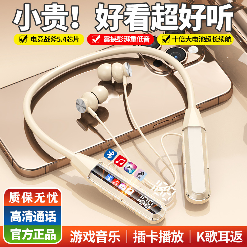 Earphone Bluetooth nirkabel digital lintas batas untuk olahraga, daya tahan baterai ultra lama, gaming, e-sports, neckband, peredam bising, universal untuk olahraga luar ruangan.