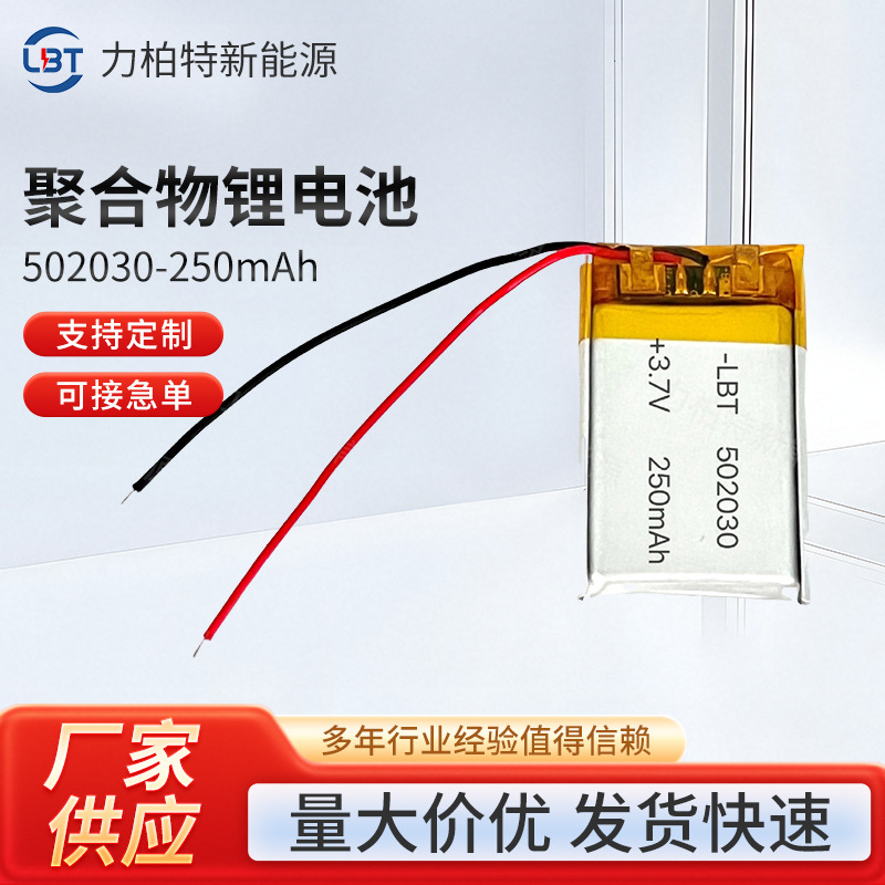 502030-250mAh聚合物电池3.7V无线蓝牙耳机带板带线锂电池可充电