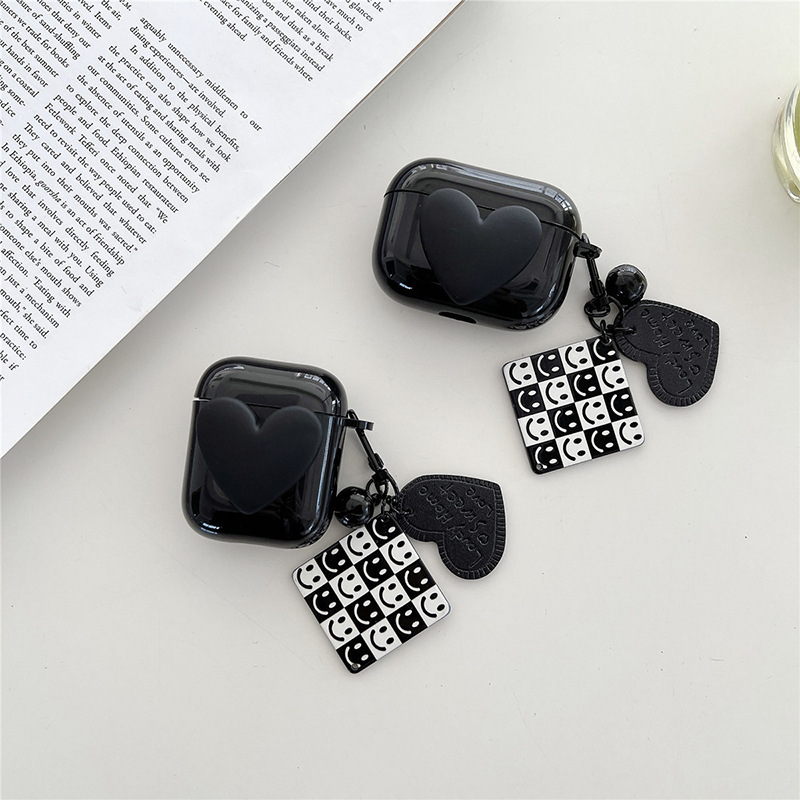 适用苹果AirPods 蓝牙耳机保护套1/2代黑色方牌笑脸爱心耳机壳