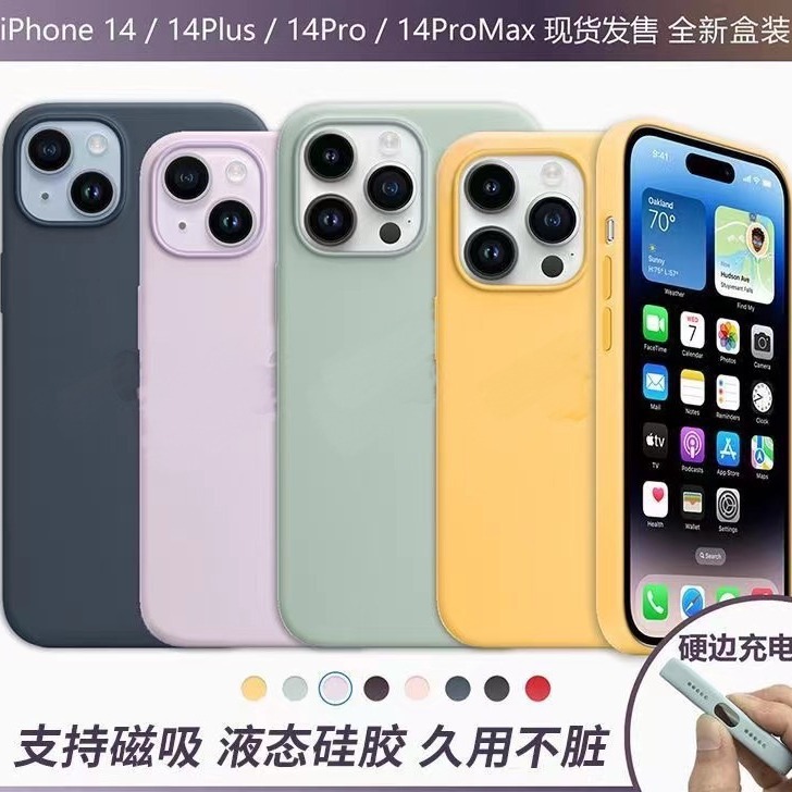 Casing Ponsel Animasi Magnetik Silikon Cair Apple 14Promax Sarung Pelindung Anti Jatuh iPhone 14 Semua Tertutup Warna Polos