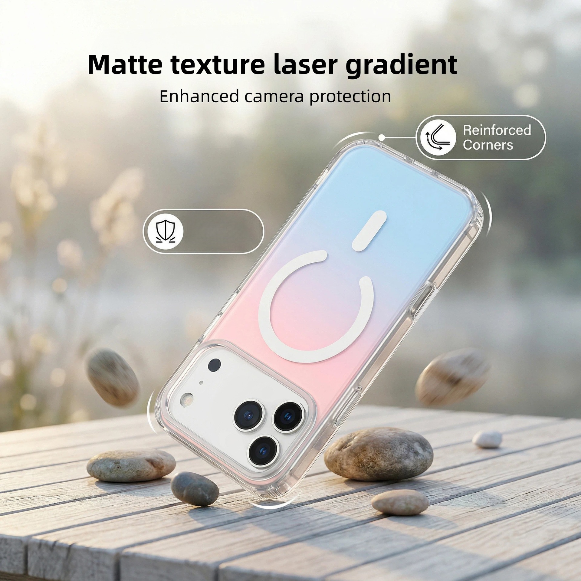 Cocok untuk casing ponsel Apple 17pro, casing magnetik Magsafe baru iPhone16 matte chameleon 17 berwarna-warni.