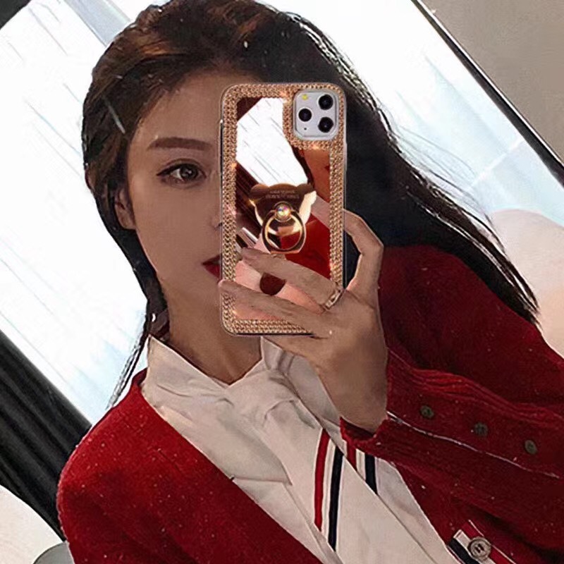 Casing ponsel bingkai berlian imitasi beruang, pelindung lembut braket dilapisi cermin untuk iPhone15pro Apple XR 8plus