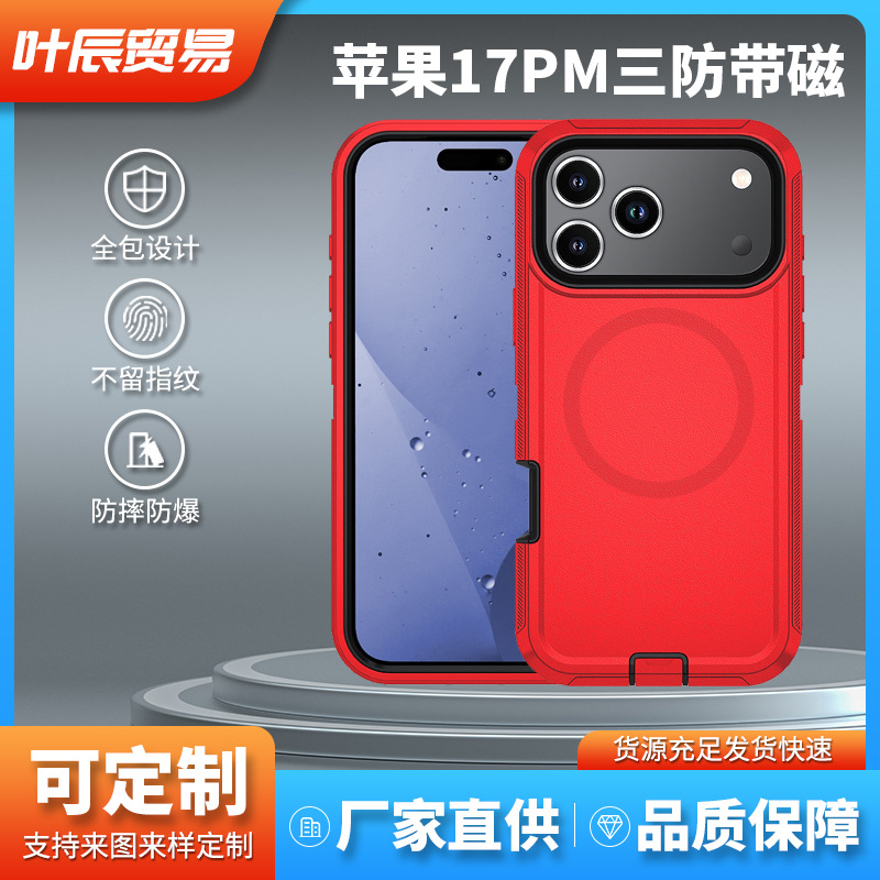 Casing Ponsel Model Magnetik Apple Cocok untuk iPhone 17 Pro Max 3-in-1 dengan Penjepit Punggung Model Lintas Batas