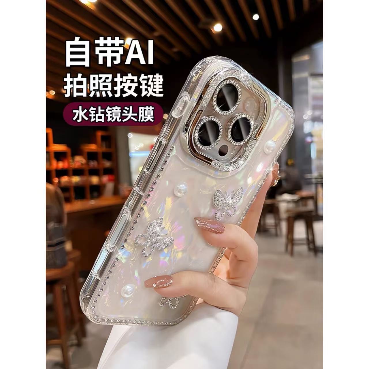Cangkang Kulit Kupu-kupu Mutiara Tiga Dimensi Berlian Imitasi Cocok untuk iPhone 16Promax Casing Ponsel Apple 15 14 Model Baru 13