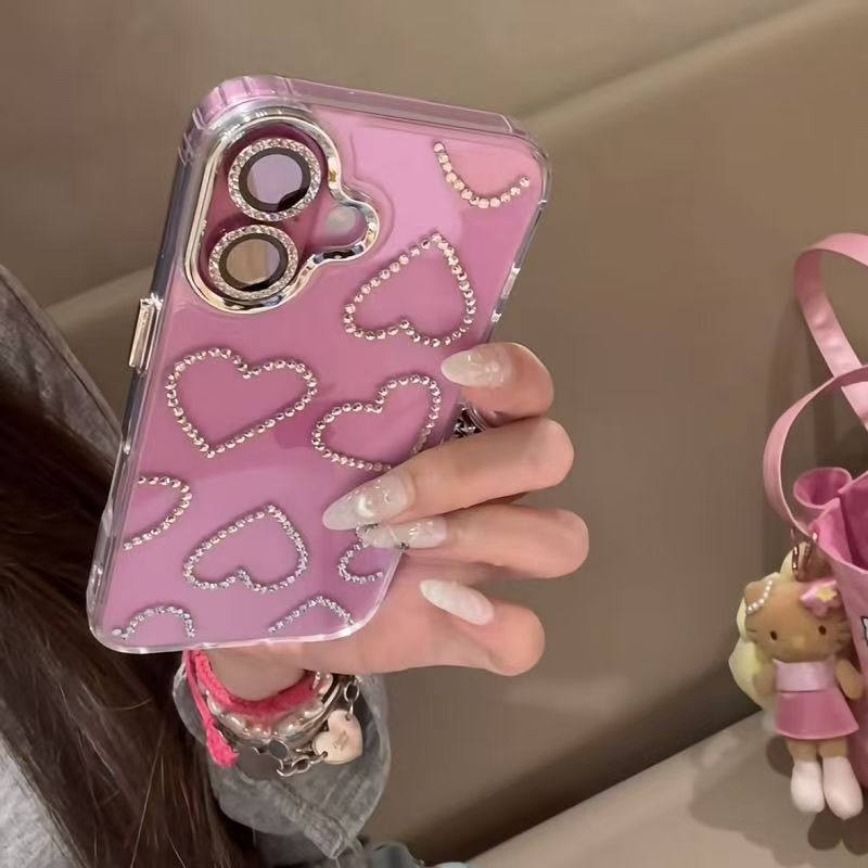 ins透明闪钻爱心适用17Promax手机壳17pro苹果小众15pro硅胶14/16