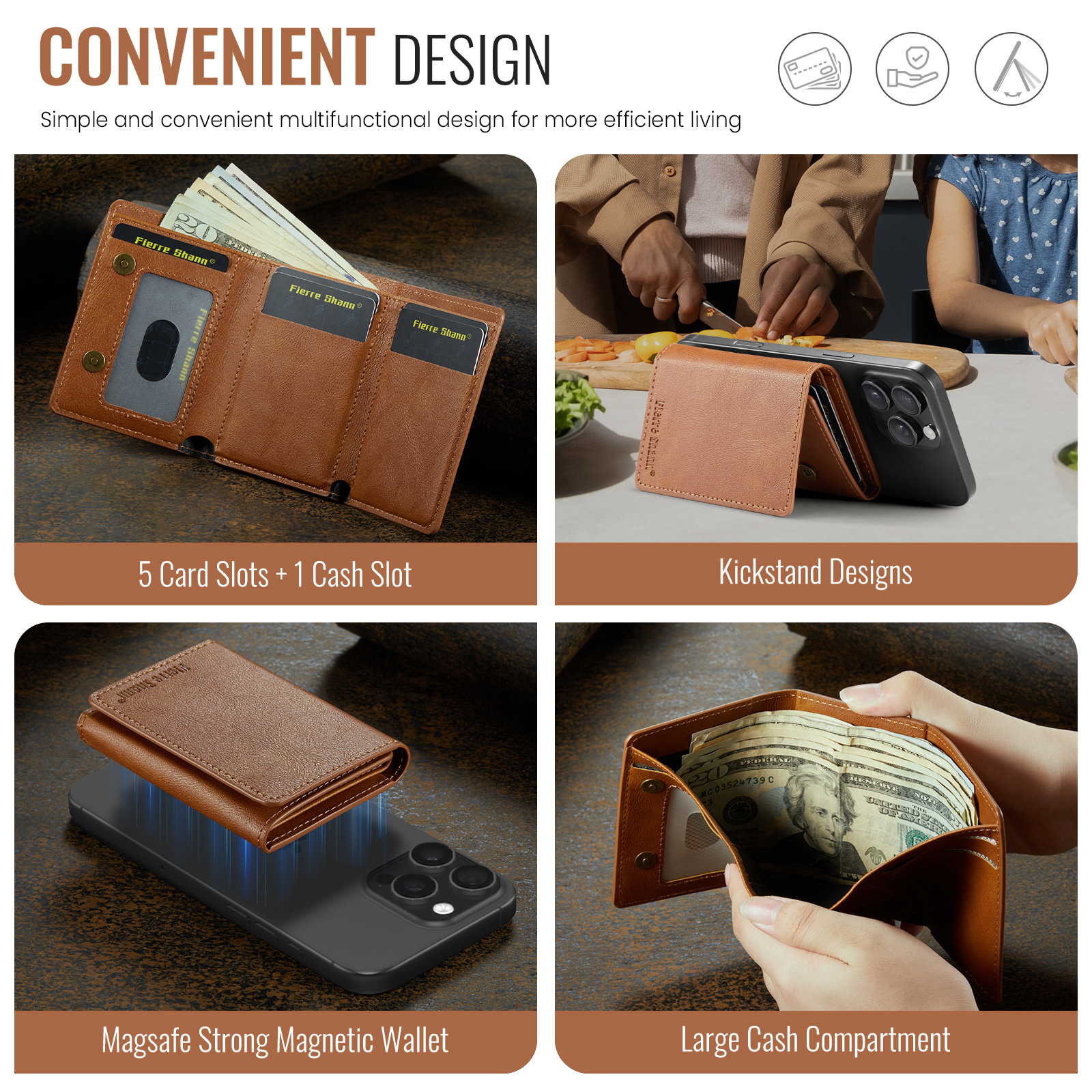 Cocok untuk Apple 12/13/14/15/16 Dompet Kartu MagSafe Magnet Lingkaran Magnet PU Kulit