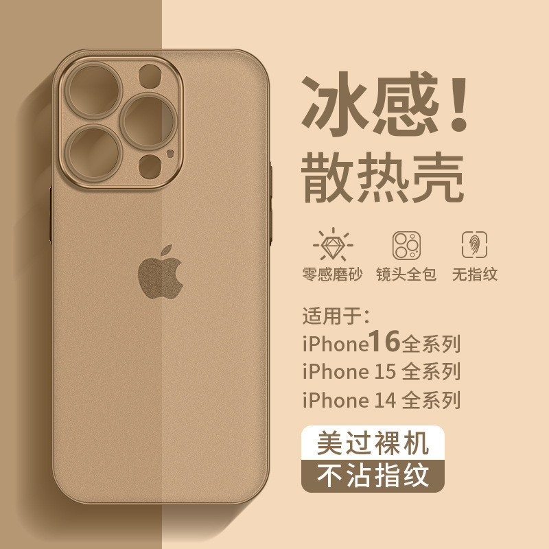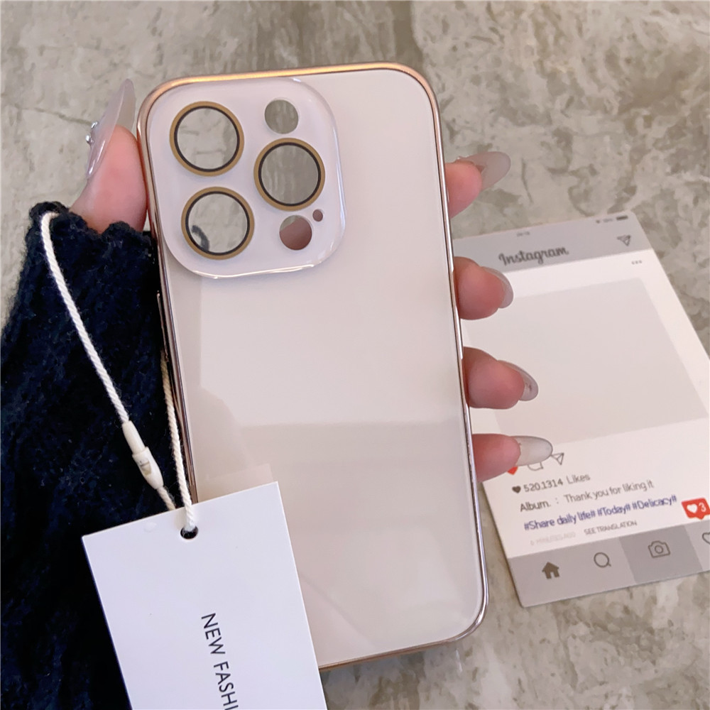 Casing Ponsel iPhone16Promax Cocok untuk Lensa Satu Bagian Casing Kaca 15Pro Emas Sampanye 14 13 Semua Paket 12